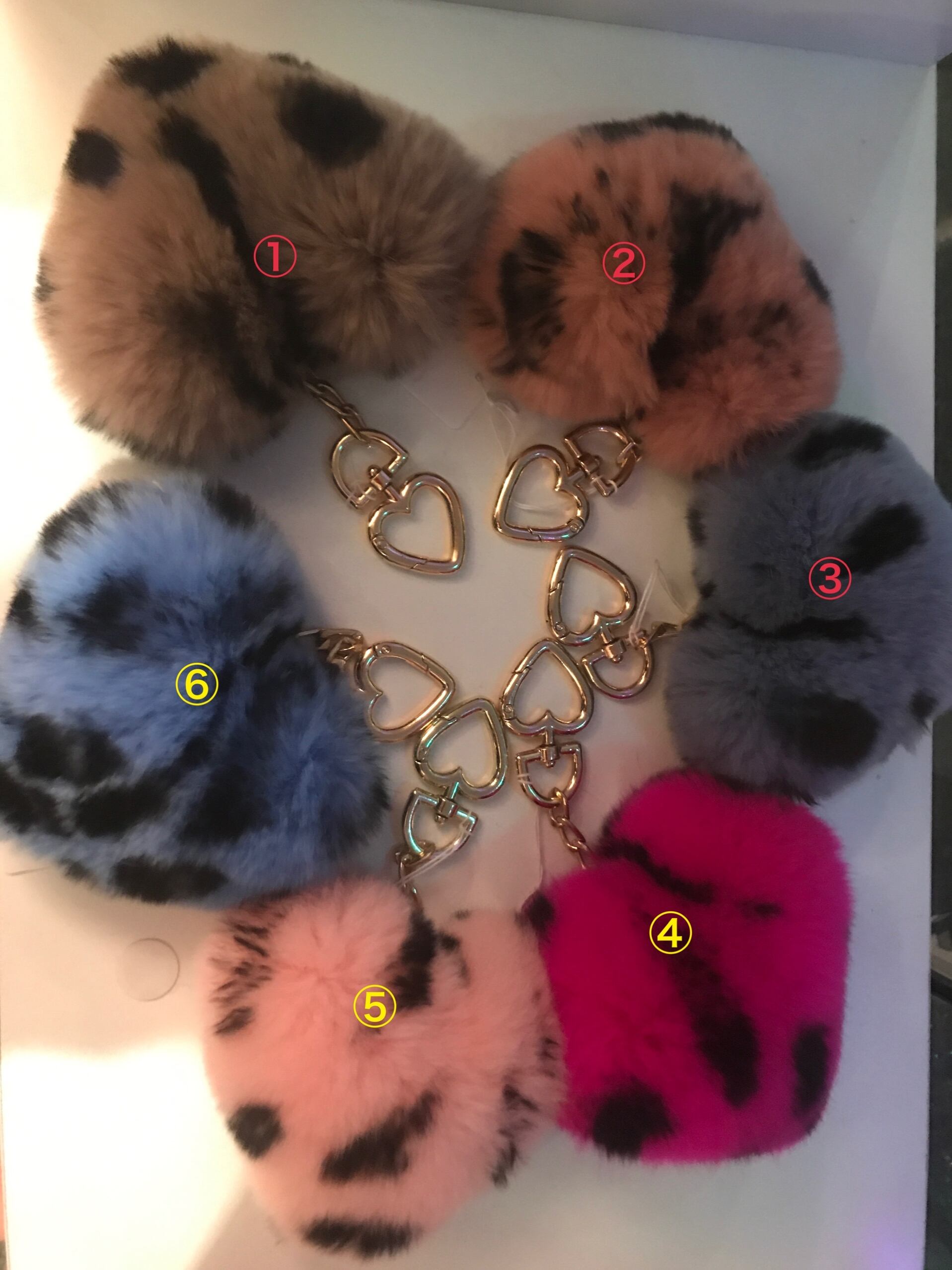 ふわふわラビットハートチャームヒョウ柄