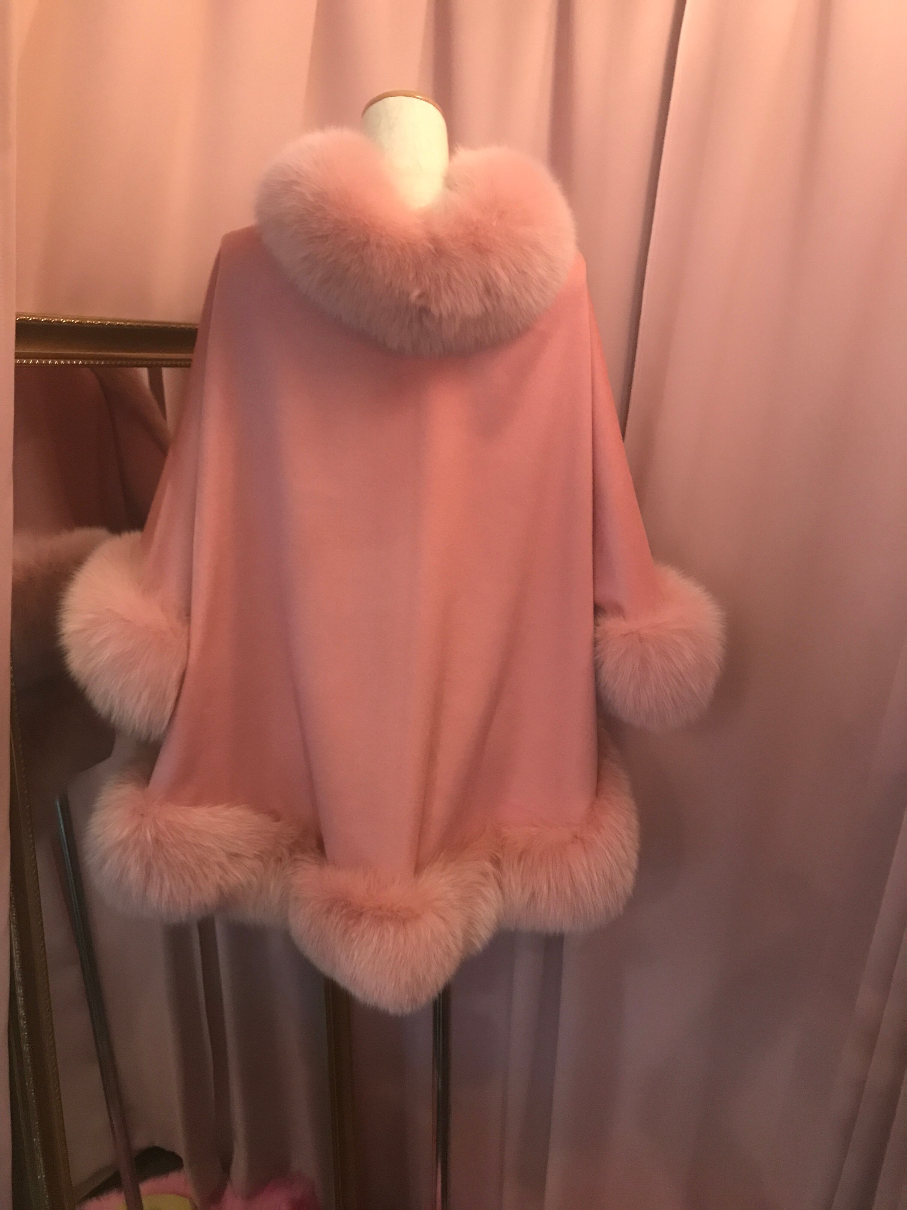 カシミヤ100ピンクfoxトリミングケープ