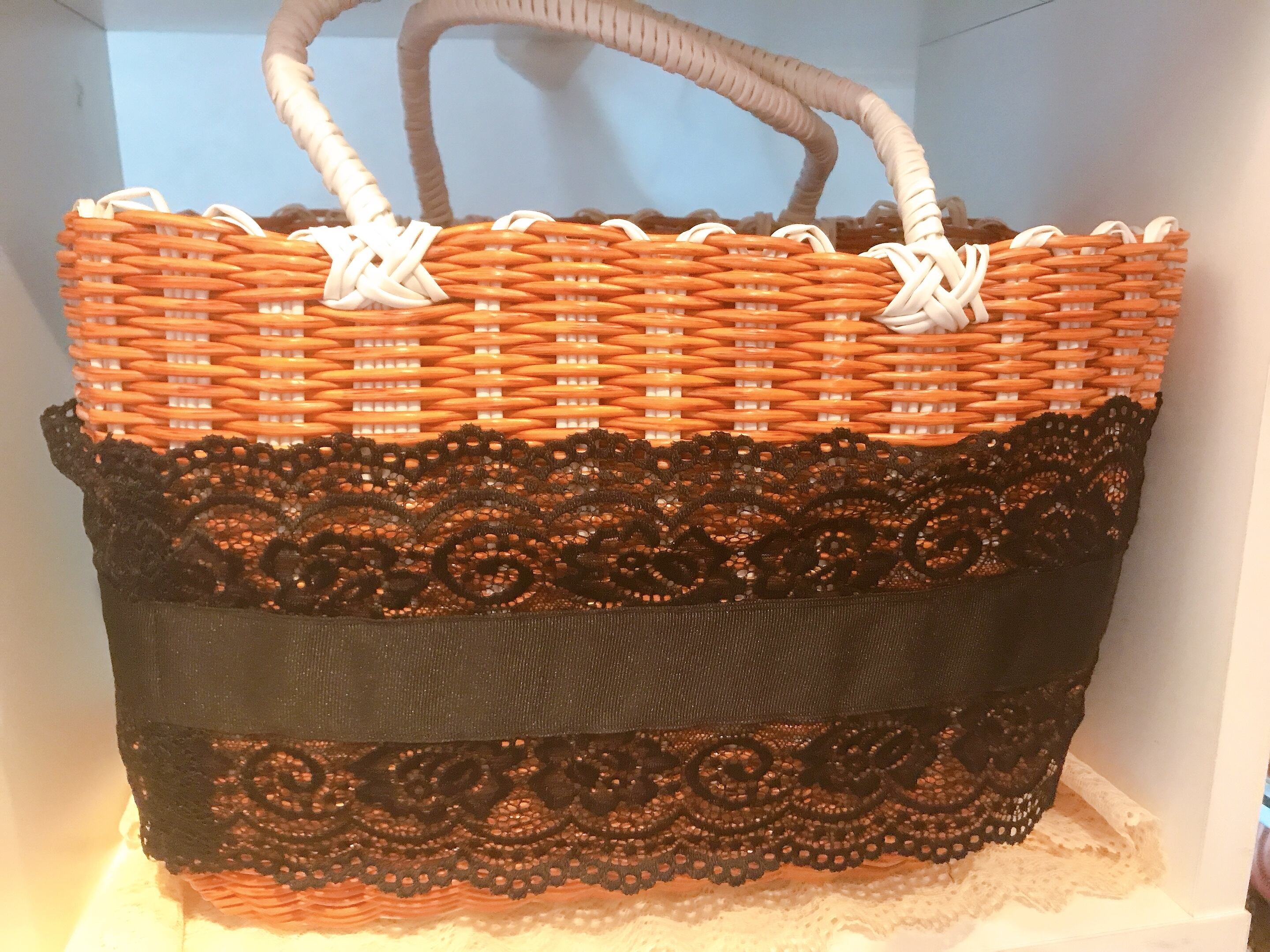 カゴバッグの素材は、ビニールタイプでとても軽いです。
