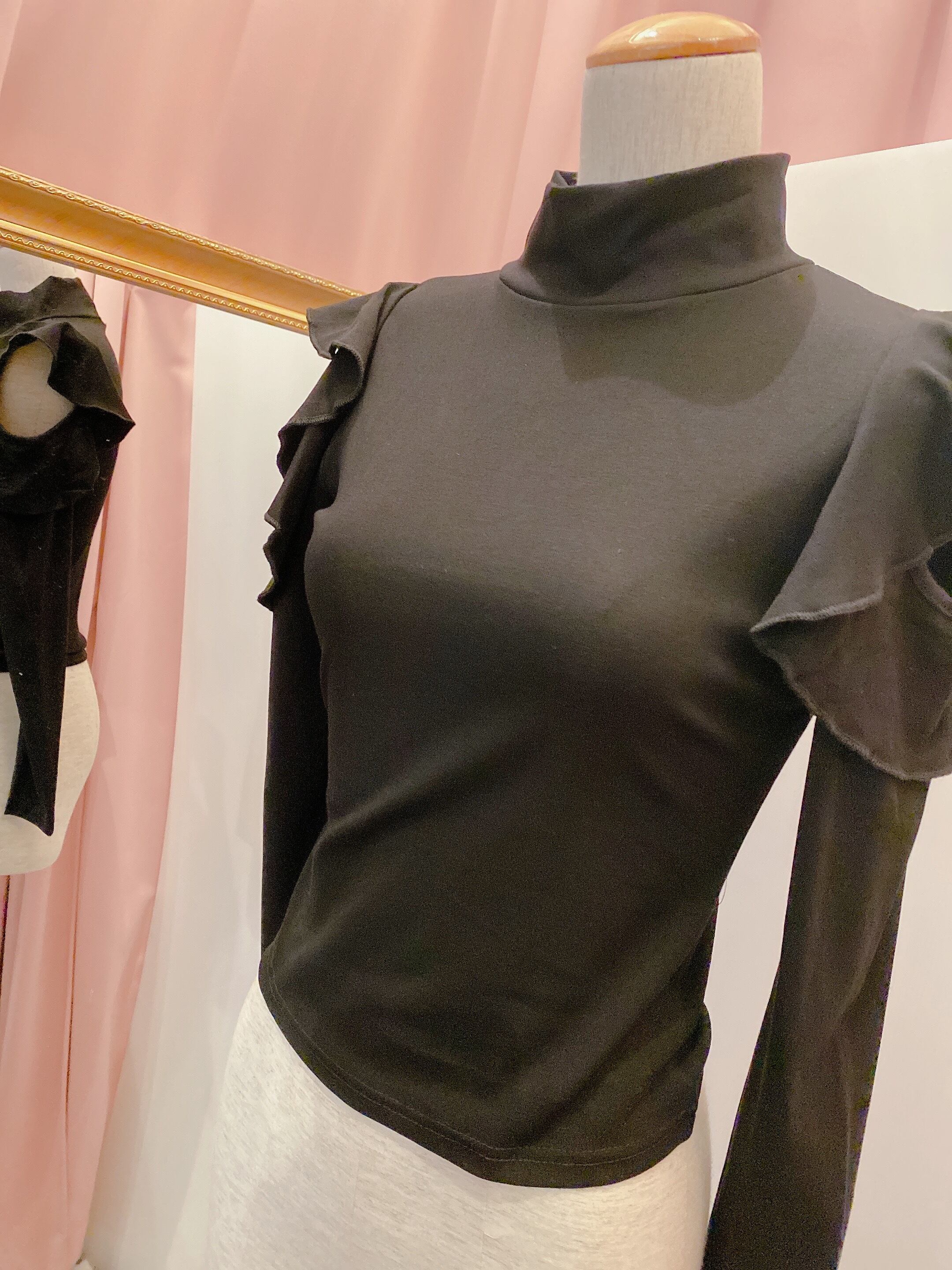 ハイネックお袖フリルオープンデザイントップス
