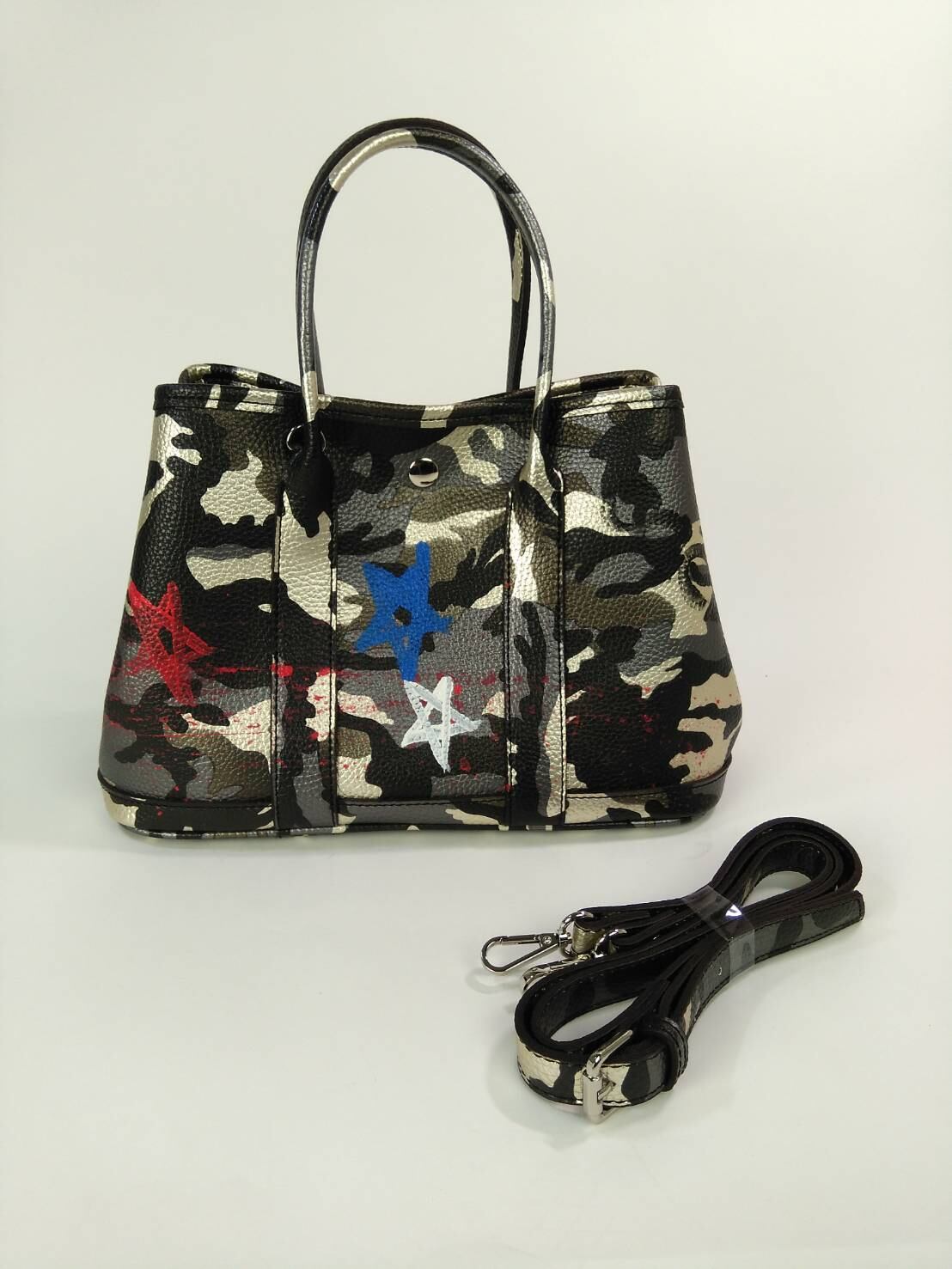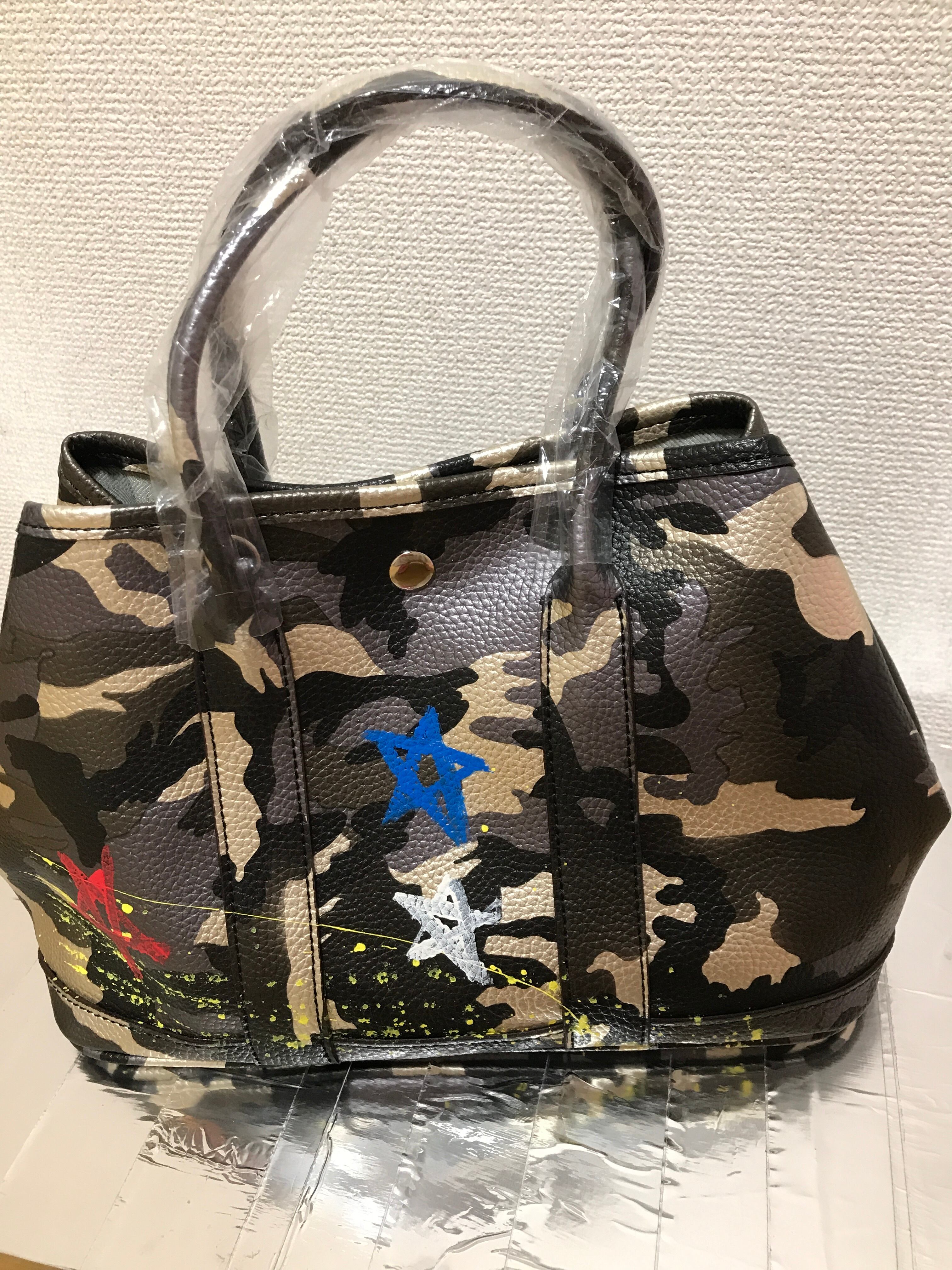 ゴールド&シルバーの迷彩ガーデンパーティーにカイロスオリジナルペイントした、軽量バッグです〜❤️